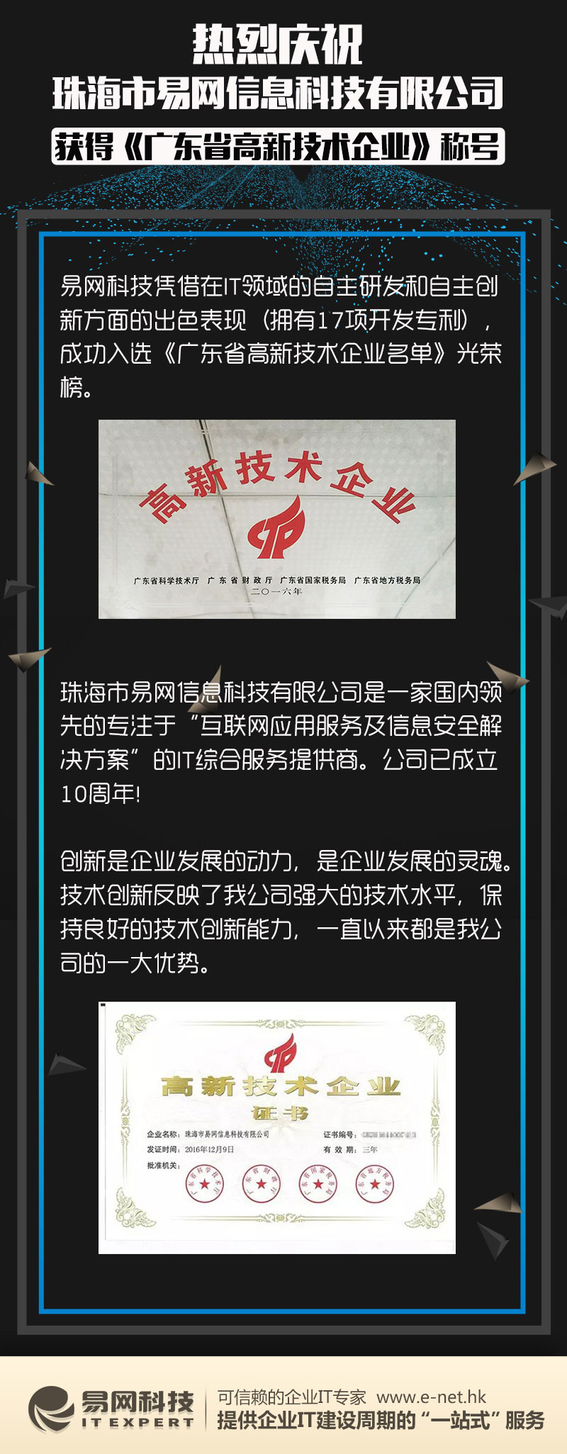 熱烈慶祝易網科技榮獲“高新技術企業”稱號!