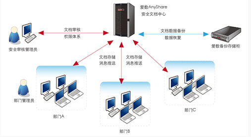 本方案采用愛數AnyShare文檔柜,為組織機構建一個安全的文檔管理中心,針對分散的文檔數據進行集中存儲與共享管理需求,一方面可以通過更好的管理輕松實現內部文件統一訪問、共享與交互協作,并且對集中存儲的文檔進行統一的安全管理。另一方面可以通過企業庫等功能對知識文檔進行組織,加快知識共享與學習,提升文檔的業務價值。