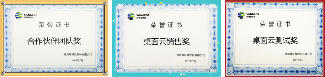 易網(wǎng)科技榮獲深信服合作伙伴團隊獎、桌面云銷售獎及測試獎